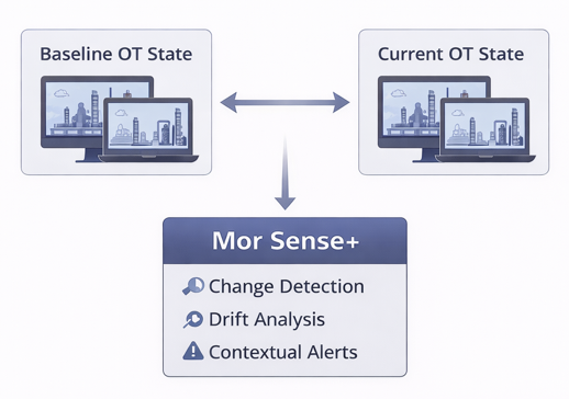 Mor Sense focuses on continuous awareness and change detection in OT environments. It identifies deviations in assets, configurations, and system states that may indicate unauthorized changes, misconfigurations, or early signs of cyber or operational risk.