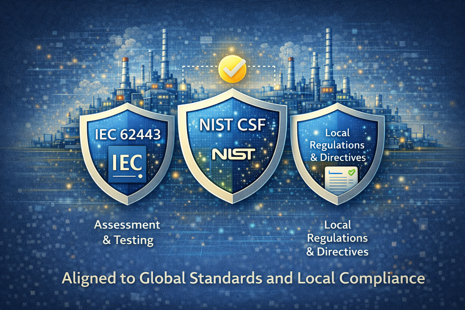 Essway solutions are designed to align technical OT data with globally recognized cybersecurity frameworks and local regulatory requirements.